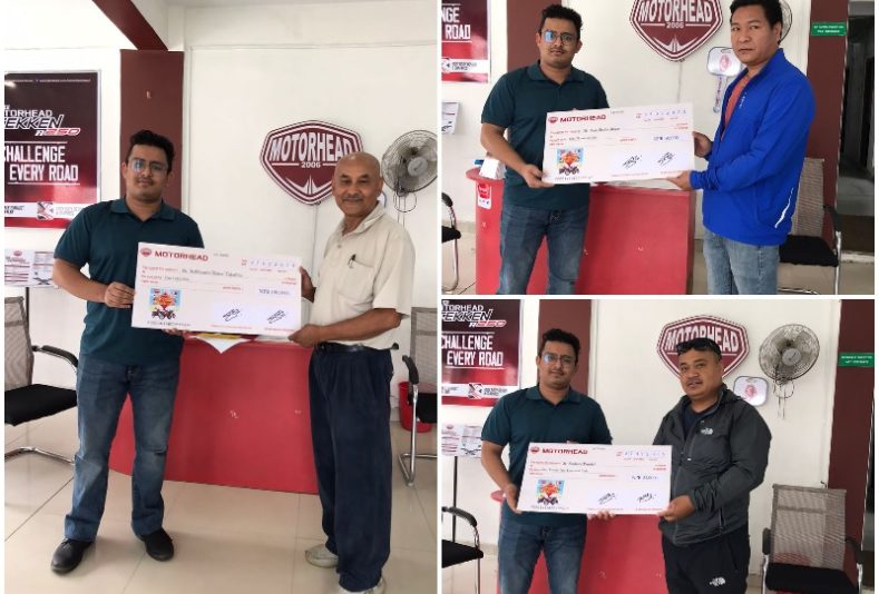 काठमाडौं – मोटरहेड ब्रान्डको नेपालका लागि आधिकारिक वितरक एसएलआर टेक्नो एन्ड ट्रेड प्रालिले लक्की ड्र मार्फत बनेका विजेताहरुलाई आज एक समारोहको बीच चेक हस्तान्तरण गरेको छ । कम्पनीले आफ्नो दशैं/तिहार/छठ अन्तर्गतको अफर अनुरुप तीन जना भाग्यशाली विजेताहरुलाई उक्त चेक हस्तान्तरण गरेको हो ।