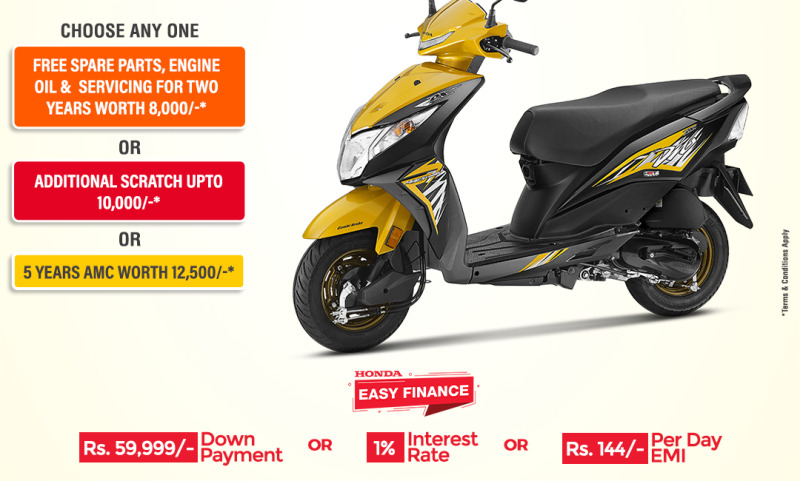 होन्डा मोटरसाइकलको नेपालका लागि आधिकारिक वितरक स्याकार ट्रेडिङ कम्पनी प्रालिले नयाँ वर्ष स्किम संगै सरल फाइनान्स स्किममा मोटरसाइकल र स्कुटर खरिद गर्न पाउने अफर ल्याएको छ । सरल फाइनान्स स्किम अन्तर्गत ग्राहकले डीओ स्कुटर खरिद गर्दा तीनमध्ये एउटा स्किम छान्न पाउनेछन् ।