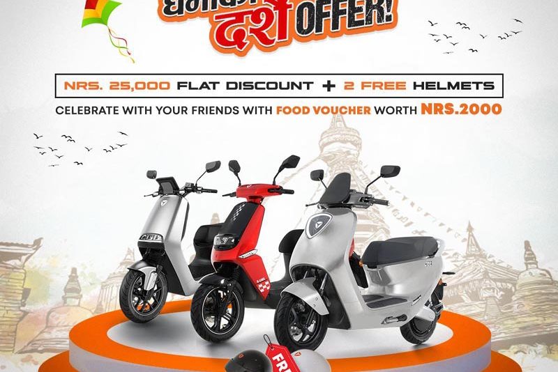 काठमाडौं – याडियाको नेपालका लागि आधिकारिक वितरक कुजु नेपाल प्रालिले चाडपर्वको अवसरमा याडियाका प्रिमियम इलेक्ट्रिक स्कुटरमा २५ हजार नगद छुट र दुई वटा हेल्मेट निःशुल्क दिने योजना सार्वजनिक गरेको छ ।