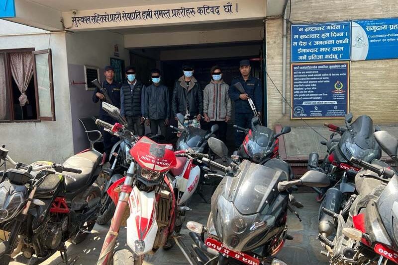 उनीहरुबाट ६ थान बजाज पल्सर मोटरसाइकल र एक/एक थान क्रसफायर र बेनेली मोटरसाइकल समेत बरामद गरिएको छ ।