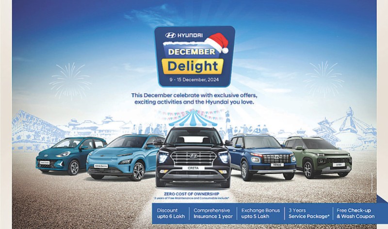 काठमाडौँ — हुन्डाई गाडीको नेपालका लागि आधिकारिक वितरक लक्ष्मी इन्टरकन्टिनेन्टल प्रालिले ‘डिसेम्बर डिलाइट’ अफर सुरु गरेको छ ।