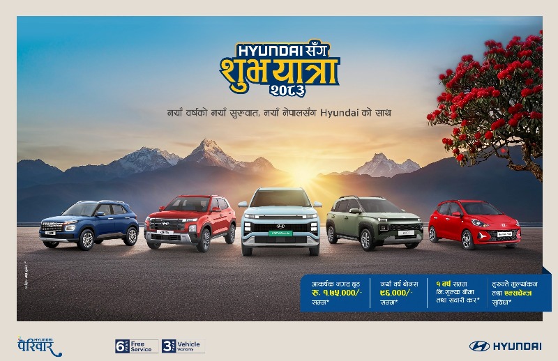 ग्राहकमैत्री सुविधा र लोकप्रिय मोडलहरू सहितको यस अफरले नयाँ वर्ष २०८३ लाई अझ विशेष बनाउने लक्ष्य राखिएको कम्पनीले बताएको छ । कम्पनीले सबैलाई नयाँ वर्षको शुभकामना दिँदै नजिकको हुन्डार्ई सोरुममा गई यस अफरबारे थप जानकारी लिन आग्रह गरेको छ ।