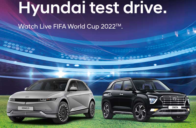 विश्वकप फुटबल–२०२२ लाई मध्यनजर गर्दै हुन्डाईले आफ्नो ‘गोल अफ द सेन्चुरी’ अभियानअन्तर्गत नयाँ अफर ल्यााएको छ । यस अफरअन्तर्गत ग्राहकले हुन्डाईको नेपालभरि रहेका कुनै पनि सोरुममा कुनै पनि कार टेस्ट–ड्राइभ गरी फिफा विश्वकप–२०२२ प्रत्यक्ष हेर्न जाने मौका पाउनेछन् ।