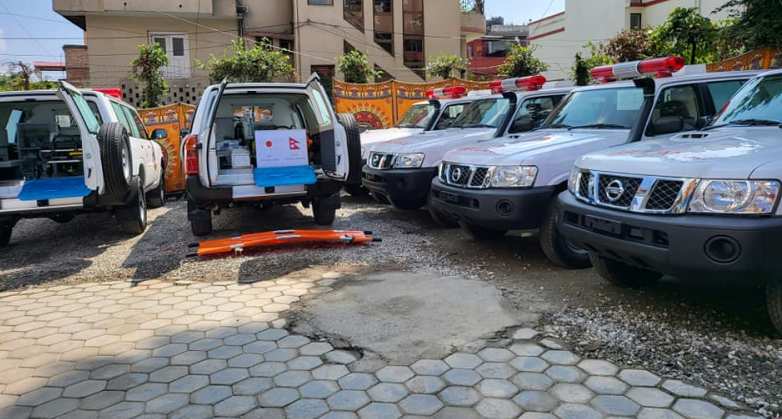 जापान सरकारले आज नेपाल एम्वुलेन्स सर्भिसलाई ९ करोड बढी मूल्य पर्ने ६ वटा निशान एम्वुलेन्स हस्तान्तरण गरेको छ । जापान सरकारले अनुदानमा उपलब्ध गराएको यी एम्बुलेन्सलाई स्वास्थ्य मन्त्रि उमेश श्रेष्ठको रोहबरमा हस्तान्तरण गरिएको हो । जापनिज अटोमेकर निशानले उत्पादन गरेको महंगो एसयुभी पट्रोलको यो एम्बुलेन्स अत्याधुनिक र सुबिधासम्पन्न बिशेषतायुक्त छ ।