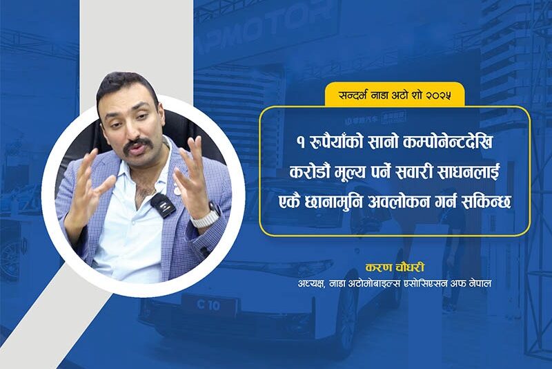 आउँदो दशकलाई प्रेरित गर्नेगरी हामीले नाडा अटो शोमा प्रविधिलाई उच्च प्राथमिकताका साथ सोकेस गर्दैछौ । नाडा अटो शोलाई व्यावसायिक थलोका रुपमा मात्र नभई नयाँ प्रविधि र भविष्यको मोबिलिटीका बारेमा अहिले नै झल्को दिनेगरी आयोजना गर्न लागेका हौँ । जसअन्तर्गत, हामीले यसपटक रोबोट र फ्लाइङ ट्याक्सी देखाउन लागेका छौ । भिन्टेज कारका लागि विशेष स्टल छुट्याएका छौँ ।