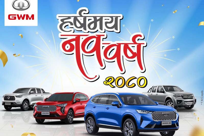 काठमाडौं – ग्रेटवाल मोटर (जीडब्ल्युएम) गाडीकोे नेपालका लागि आधिकारिक बिक्रेता भीजी इम्पेक्स प्रालिले ‘हर्षमय नव वर्ष २०८०’ अफर ल्याएको छ । कम्पनीले नेपाली नयाँ वर्षको अवसरमा उक्त अफर ल्याएको हो ।