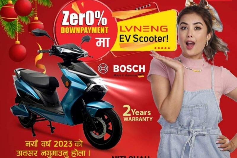 लेभनिङ इलेक्ट्रिक स्कुटरको आधिकारिक विक्रेता इभी नेपाल मोटर्सले नयाँ वर्ष स्किम ल्याएको छ । सो स्किम अन्तर्गत ग्राहकले यो व्राण्डको इलेक्ट्रिक स्कुटर खरिद गर्दा डाउनपेमेन्ट वापतको रकम भुक्तानी गर्नुपर्ने छैन । स्कुटरको शत् प्रतिशत रकमलाई ग्राहकले किस्तावन्दिमा भुक्तानी गरेर खरिद गर्न सक्नेछन् ।