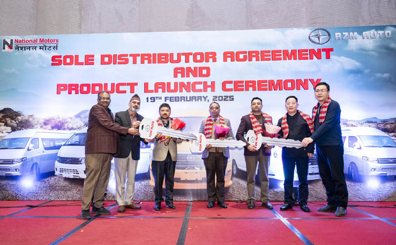 एक कार्यक्रमका बिच नेसनल मोटर्सका म्यानेजिङ डाइरेक्टर सञ्जय कुमार अग्रवाल, राठी ट्रेडिङका म्यानेजिङ डाइरेक्टर दिनेश कुमार राठी र शाङच आरजेडएम अटोका इन्टरनेसनल जनरल म्यानेजर केन सुनले सहकार्यको घोषणा गरे ।