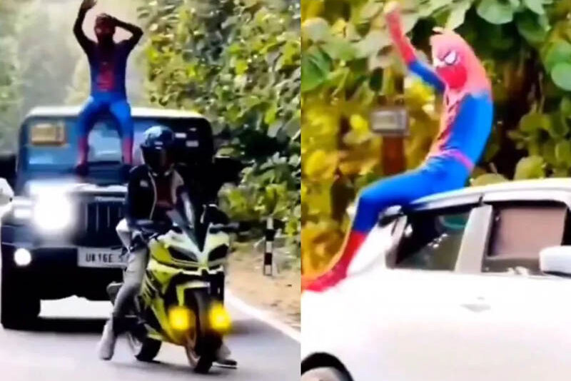 सामाजिक सञ्जालमा भाइरल भएको एक अनौठो भिडियोले अहिले सबैको ध्यान खिचेको छ। उत्तराखण्डको देहरादुनस्थित विकासनगरमा एक युवक स्पाइडर म्यानको पोशाकमा महिन्द्रा थारको छतमा बसेर स्टन्ट गरिरहेको देखिन्छ। भिडियोमा यस्तै किसिमका अन्य युवाहरू पनि देखिन्छन्, जसमा एक जनाले रातो भालुको पोशाकमा मोटरसाइकल चलाइरहेक छन्।