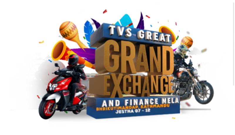 सबै दुई पाङ्ग्रे सवारी प्रेमीहरू र सम्भावित ग्राहकहरूलाई भृकुटीमण्डपमा जेठ ७ देखि १२ सम्म उपस्थित भएर टीभीएस ग्रेट ग्रान्ड एक्सचेन्ज एन्ड फाइनान्स मेलामा सहभागी हुन कम्पनीले अनुराेध गरेको छ ।